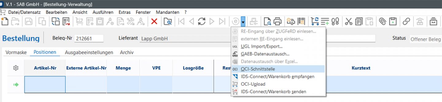 Die SAB Steuerungs- und Anlagenbau GmbH mit Sitz in Nufringen hat OCI bereits vor zehn Jahren eingeführt und in Zusammenarbeit mit LAPP dessen Online Shop über diese Schnittstelle angebunden. Der Weltmarktführer für integrierte Lösungen und Markenprodukte im Bereich der Kabel- und Verbindungstechnologie bietet neben hochwertiger Technik auch durchdachte digitale Services wie die OCI-Schnittstelle, die SAB seitdem nutzt. Und das Ergebnis überzeugt: „Früher war die Verarbeitung der Datenmengen ein Albtraum“, erinnert sich Bruno Bachmann, Systemadministrator bei SAB. „Heute sorgen stets aktuelle Preise, korrekte Artikelinformationen und ein durchgängig digitaler Bestellprozess im System dafür, dass wir Zeit sparen, Fehler vermeiden und jederzeit den Überblick behalten.“