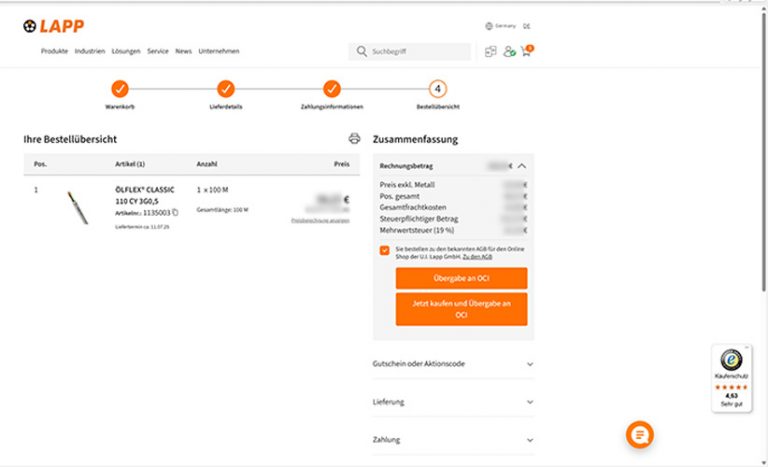 Der Wechsel auf den neuen Online Shop von LAPP brachte weitere Vorteile. Die modernisierte Plattform bietet eine verbesserte Benutzeroberfläche und eine erweiterte Funktionalität, die ebenfalls über die OCI-Schnittstelle nutzbar ist. Für SAB bedeutet das: noch mehr Komfort im Bestellprozess bei gleichbleibender technischer Stabilität.